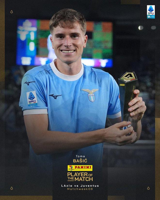 官方消息,托马-巴希奇当选拉齐奥对阵尤文图斯一役全场最佳。