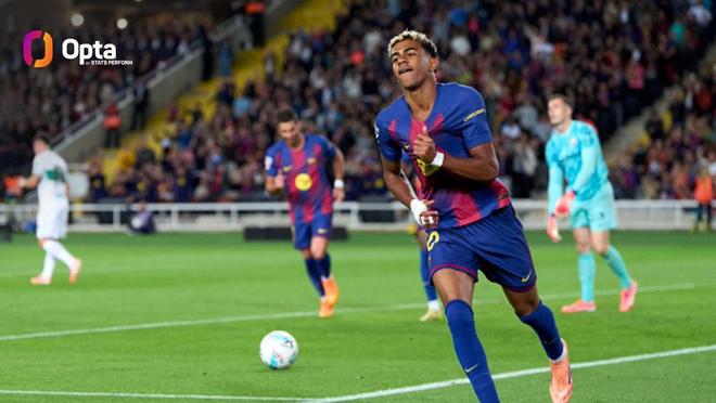 根据Opta的统计,本场比赛的进球是18岁的亚马尔西甲出战80场所打进的第17球,在进入21世纪之后,只有姆巴佩在年满19岁之前的五大联赛进球数(23球)比亚马尔更多。